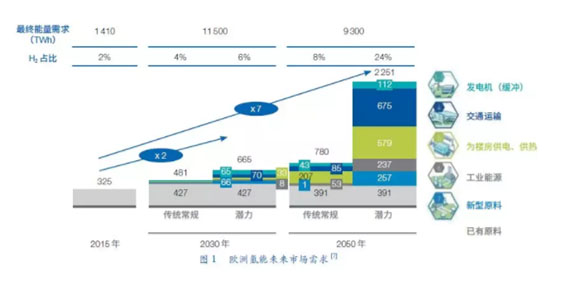 為了實(shí)現(xiàn)歐洲二氧化碳減排目標(biāo),必須發(fā)展氫能。對(duì)于諸如天然氣網(wǎng)、運(yùn)輸(特別是重型車輛)關(guān)鍵部分的規(guī)模脫碳、高級(jí)燃料和化學(xué)原料需要大量使用氫氣。