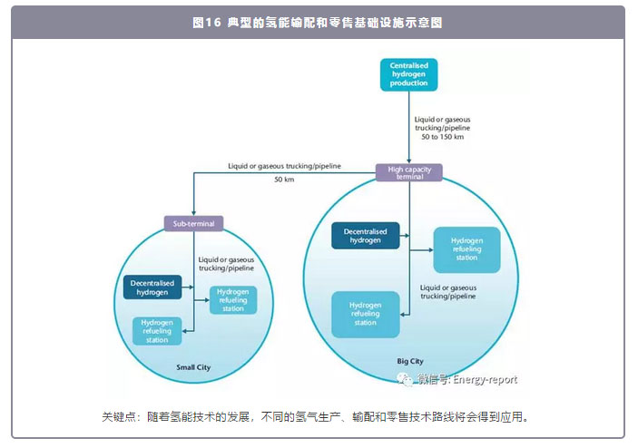 雖然氫和燃料電池在終端用能領域具有很大的發(fā)展空間和能源安全優(yōu)勢,但氫氣發(fā)電、輸配和零售基礎設施的發(fā)展仍具有挑戰(zhàn)性。例如,燃料電池汽車市場發(fā)展相關的風險一直是基礎設施投資的重大障礙。對于從現在到2050年之間假定銷售1.5億輛燃料電池汽車中的每一輛,根據地區(qū)的不同,需要花費900~1900美元用于氫氣基礎設施的開發(fā)。1