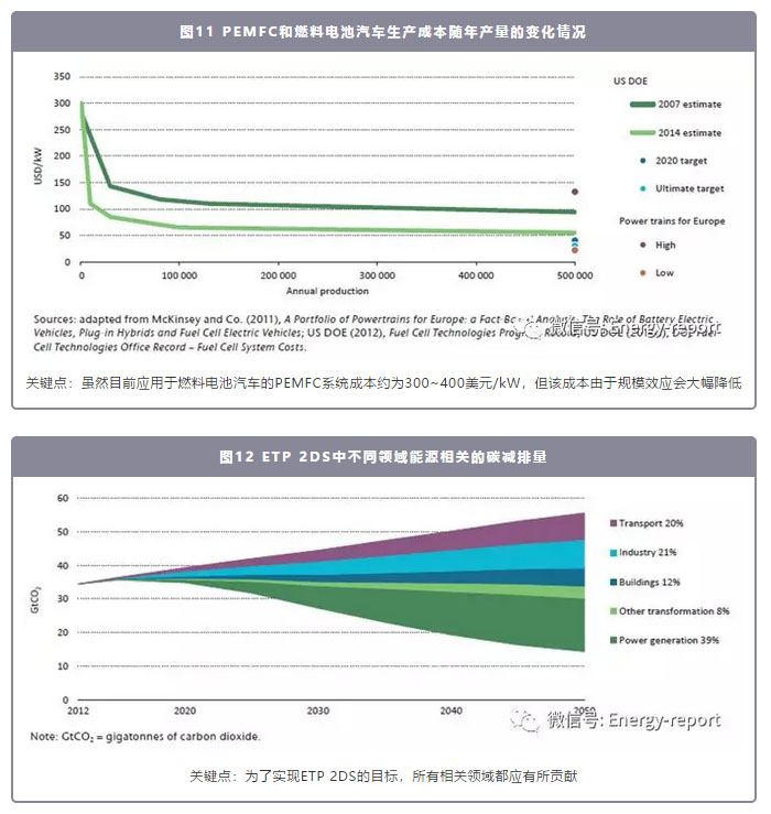 燃料電池汽車可以替代當今傳統(tǒng)汽車提供碳排放量極低的出行和運輸服務。到2050年,在公路運輸中部署25%的燃料電池汽車比例可以貢獻高達10%的累計運輸相關碳減排量,促使ETP 6°C情景(6DS)轉變?yōu)?DS,具體減排程度取決于不同地區(qū)的情況。假設燃料電池汽車銷售快速增長,在推出首批10000輛燃料電池汽車后,預計15~20年內將形成一個自我維持的市場。