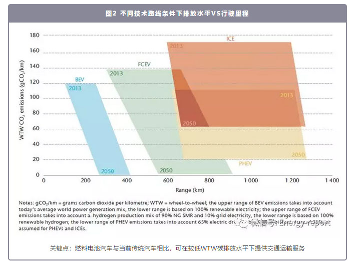 具有低碳足跡的氫有可能促進能源相關二氧化碳排放的顯著減少,并有助于將全球溫度上升控制在2°C以內,正如國際能源署能源技術展望(ETP)中描述的高氫發(fā)展2°C情景一樣。此外,與直接化石燃料燃燒相比,氫氣的使用可以降低局部空氣污染物排放和噪音污染。通過在2°C情景下繼續(xù)使用化石燃料資源滿足終端用能需求,氫氣與CCS結合可以提供保障能源安全的措施并幫助維持多樣化的燃料組合。