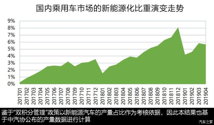 與此同時,國內(nèi)乘用車市場的新能源化比重(新能源乘用車產(chǎn)量/乘用車總產(chǎn)量)也從上個月的5.84%降低到5.66%。這一比重在2018年的10月到12月均超過了6%,12月更是達(dá)到8.13%的歷史峰值。