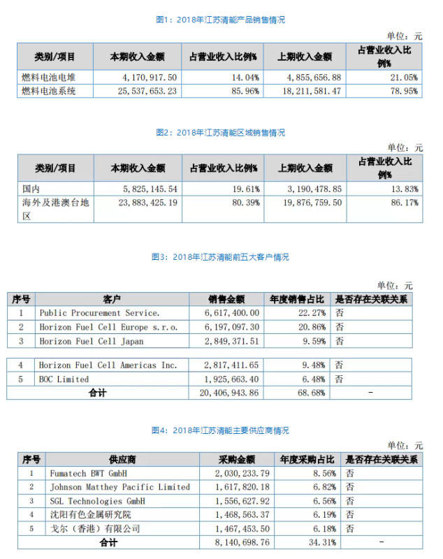 資料顯示,清能燃料電池集團(tuán)從2003年開(kāi)始涉足燃料電池領(lǐng)域,與新源動(dòng)力、上海神力、上燃動(dòng)力等屬于同一時(shí)代“元老級(jí)”企業(yè),現(xiàn)重點(diǎn)關(guān)注于大功率車用及工業(yè)用燃料電池的研發(fā)和生產(chǎn)。江蘇清能成立于2011年,2018年在新三板掛牌,公司致力于燃料電池核心材料、電堆及燃料電池系統(tǒng)的研發(fā)、生產(chǎn)與銷售,主要應(yīng)用領(lǐng)域?yàn)樾履茉雌?、分布式電源和不間斷電源等。