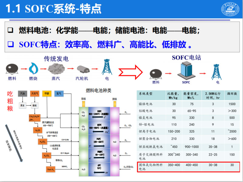 李曦:各位來(lái)賓,大家上午好!下面將我們團(tuán)隊(duì)在固體氧化物燃料電池系統(tǒng)性能評(píng)估與健康管控領(lǐng)域所做工作給大家做一個(gè)介紹。主要圍繞以下四個(gè)方面。首先是SOFC系統(tǒng)的背景、原理、特點(diǎn)。剛才前面幾位老師都已經(jīng)詳細(xì)地介紹了SOFC系統(tǒng)的發(fā)展歷史和產(chǎn)品特點(diǎn)。這是美國(guó)的海軍水下作戰(zhàn)中心選擇UUV動(dòng)力電源的時(shí)候所做的能量密度比的數(shù)據(jù)論證,充分說(shuō)明了固體氧化物燃料電池優(yōu)勢(shì)。固體氧化物燃料電池的核心反應(yīng)載體,在高溫600℃以上發(fā)生電化學(xué)反應(yīng),為保障穩(wěn)定高品質(zhì)系統(tǒng)輸出,還需要配備一系列高低溫區(qū)BOP器件等形成一個(gè)獨(dú)立發(fā)電系統(tǒng),才能符合一個(gè)具體應(yīng)用場(chǎng)景的實(shí)際需求。圖中是國(guó)際上SOFC在海陸空等領(lǐng)域呈現(xiàn)的不同具體應(yīng)用,比如美日歐等國(guó)的分布式電站、家庭熱電聯(lián)供、車用輔助動(dòng)力以及百瓦級(jí)無(wú)人機(jī)。