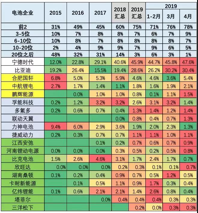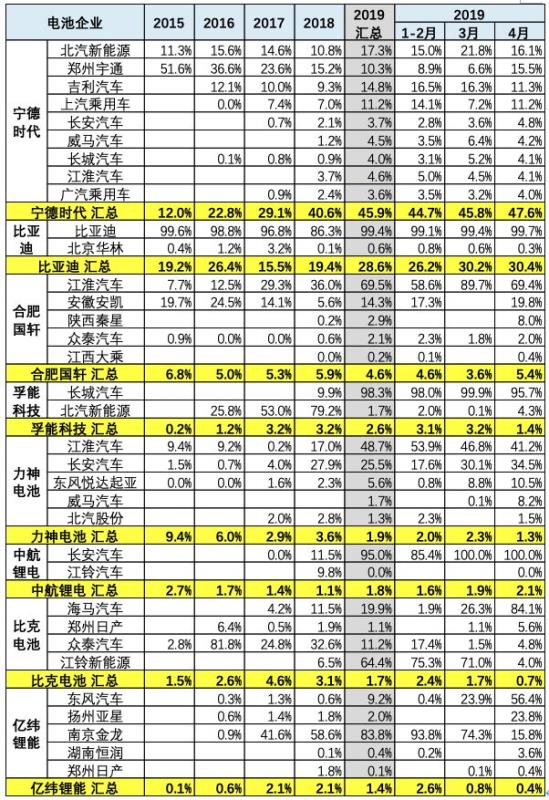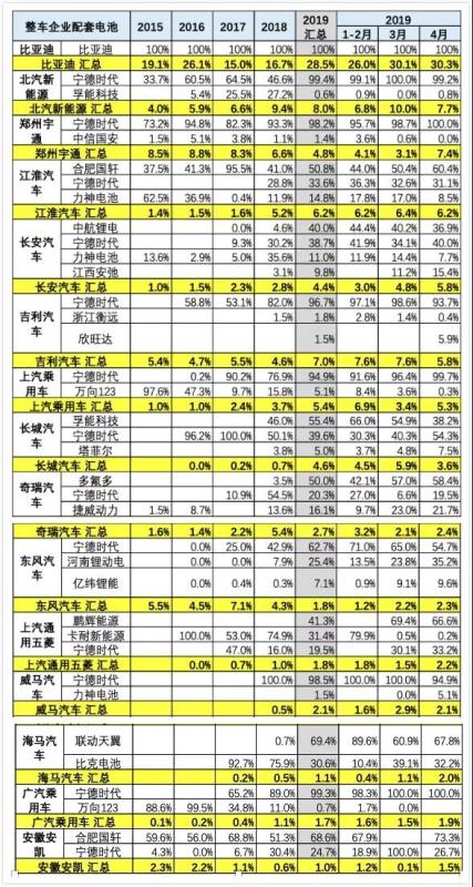 寧德時代上市前后很強(qiáng),1-4月也很優(yōu)秀,達(dá)到48%。而比亞迪的電池需求也比2018年大幅增長,份額達(dá)到30%,這也是客車的體系支撐。