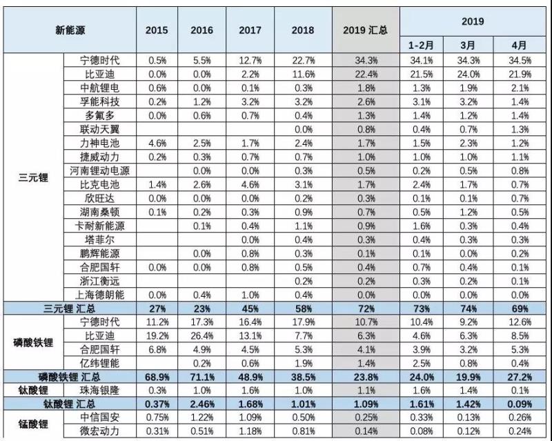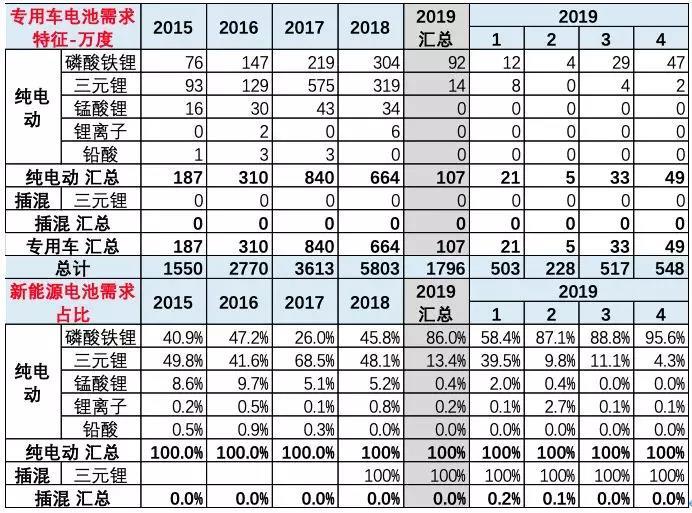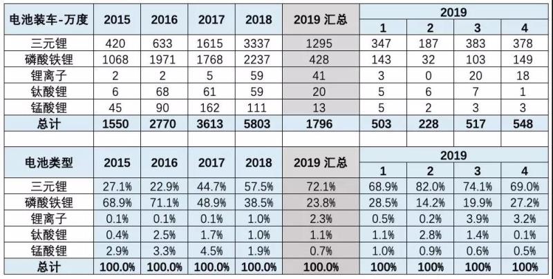 2019年1-4月磷酸鐵鋰裝車臺數(shù)下降到8%。未來的低成本優(yōu)勢明顯。