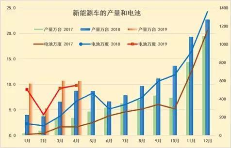 從2018年年末到2019年1-4月的汽車走勢看,2019年的電池需求是較好增長狀態(tài),2019年新能源車新補(bǔ)貼政策的波段釋放需求和實現(xiàn)供需的逐步標(biāo)準(zhǔn)提升的的放量的拉動效果較好。
