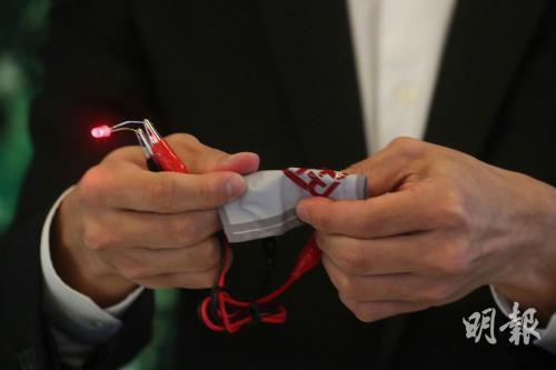 香港理工大學(xué)紡織及服裝學(xué)系團(tuán)隊(duì)花3年時(shí)間,完成研發(fā)可折疊的織物鋰電池。圖片來(lái)源:香港《明報(bào)》/李紹昌 攝