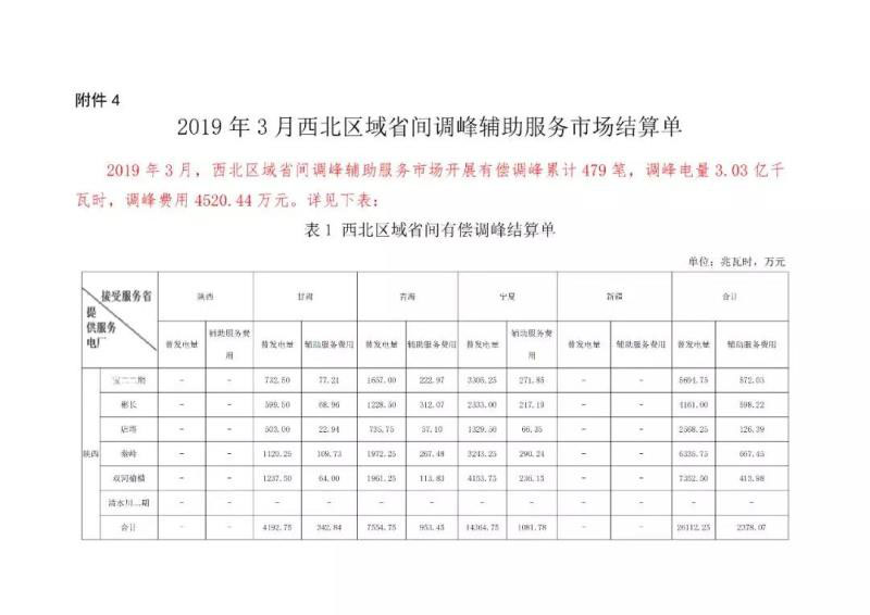 2019年3月,西北區(qū)域省間調(diào)峰輔助服務(wù)市場開展有償調(diào)峰累計479筆,調(diào)峰電量3.03億千瓦時,調(diào)峰費用4520.44萬元。