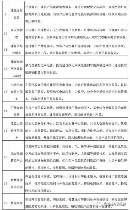“綜合能源服務(wù)”一詞首次在官方文件提出,是2016年10月國(guó)家發(fā)展改革委、國(guó)家能源局發(fā)布的《有序放開(kāi)配電業(yè)務(wù)管理辦法》中第十二條指出的“配電網(wǎng)運(yùn)營(yíng)者可有償為各類(lèi)用戶(hù)提供增值服務(wù)。包括但不限于:用戶(hù)多種能源優(yōu)化組合方案,提供發(fā)電、供熱、供冷、供氣、供水等智能化綜合能源服務(wù)”,至此綜合能源服務(wù)的萌芽出現(xiàn)。