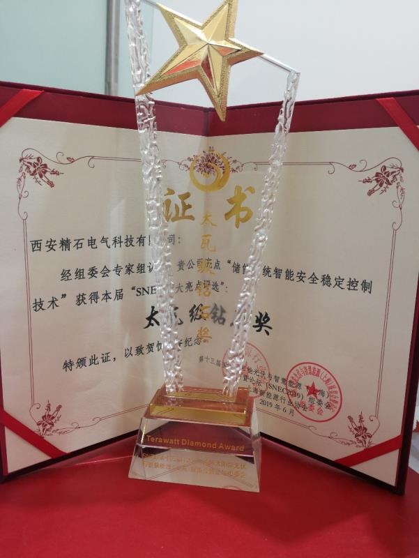 SNEC展會(huì)組委會(huì)推出的參展商“十大亮點(diǎn)”評(píng)選已連續(xù)舉辦九屆,由業(yè)內(nèi)權(quán)威專家評(píng)選最具先進(jìn)性、獨(dú)創(chuàng)性和社會(huì)性的技術(shù)和產(chǎn)品,涵蓋發(fā)電、器件、原料、裝備等領(lǐng)域,精石科技憑借先進(jìn)的技術(shù)創(chuàng)新,助力儲(chǔ)能事業(yè)的發(fā)展,獲得一項(xiàng)太瓦級(jí)鉆石獎(jiǎng)和兩項(xiàng)兆瓦級(jí)翡翠獎(jiǎng)。