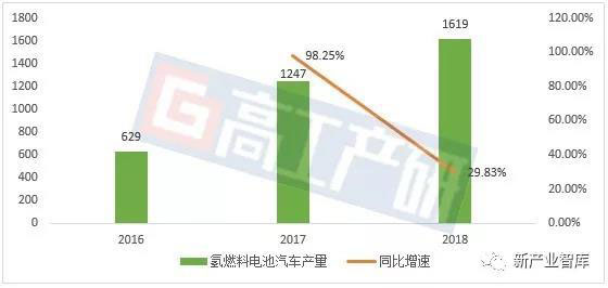 2018年中國(guó)氫燃料電池汽車產(chǎn)量1619輛,其中專用車909輛,客車710輛。相較于2017年,中國(guó)氫燃料電池汽車產(chǎn)量同比增長(zhǎng)29.83%。