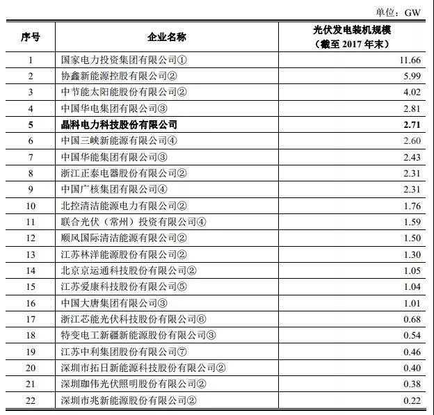 在光伏電站投資領(lǐng)域,華能發(fā)展更為緩慢。晶科的招股說(shuō)明書顯示,截至2017年底,華能集團(tuán)僅僅以2.43GW的總裝機(jī)位居第7位,而國(guó)電投的總裝機(jī)容量高達(dá)11.66GW。