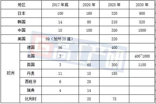 分析來看,2018~2020年是中國加氫站建設的關鍵時期,到2020年底保有量將從2017年的15座增加到100座以上。加氫站規(guī)模不斷提升,從當前200kg/d的規(guī)模提升到500~1000kg/d,甚至更大。2018~2020年海外加氫站也在密集建設,預計到2020年海外加氫站保有量超過850個,較2017年增幅超過60%。