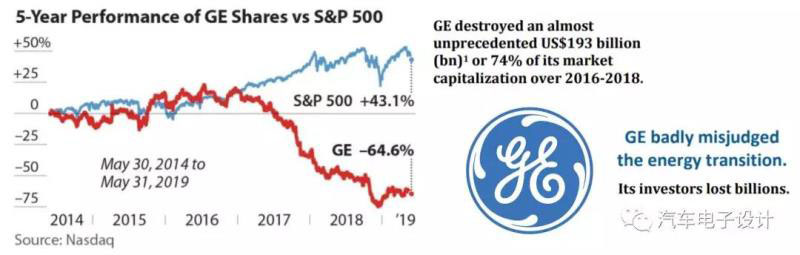 IEEFA美國(guó)能源經(jīng)濟(jì)和金融分析研究所發(fā)布了一份報(bào)告,《General Electric Misread the Energy Transition: A Cautionary Tale》里面闡述了美國(guó)通用電氣公司嚴(yán)重誤讀了能源變化的趨勢(shì),特別是全球各國(guó)在2015年在《巴黎協(xié)定》之后電力能源結(jié)構(gòu)的轉(zhuǎn)化,在戰(zhàn)略方向上和業(yè)務(wù)上的判斷的錯(cuò)誤,使得通用電氣的股東付出了巨大的代價(jià)。通用電氣的市值在短短三年內(nèi)就損失了1930億美元,占其市值的74% 。