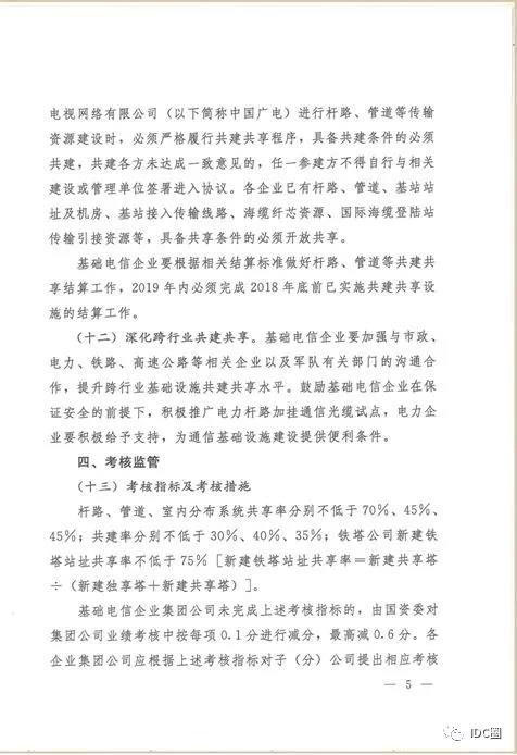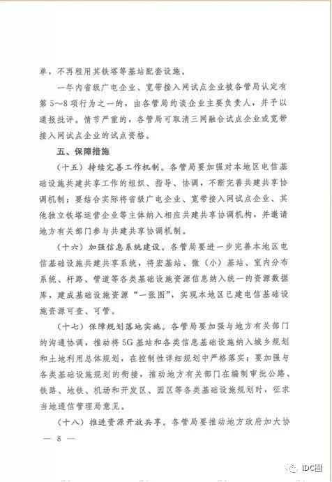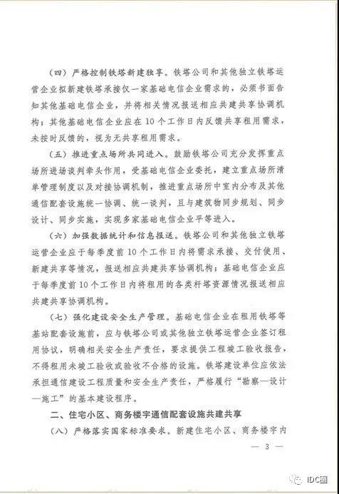 在鐵塔、室內(nèi)分布系統(tǒng)等設(shè)施共建共享中提到: (三) 加強(qiáng)資源雙向開放共享。基礎(chǔ)電信企業(yè)與鐵塔公司要利用路燈、監(jiān)控、交通指示等社會桿塔資源,充分發(fā)揮自身優(yōu)勢,按照市場化原則開展微(?。┗窘ㄔO(shè);鼓勵(lì)各企業(yè)積極與市政、公安、交通等部門溝通協(xié)商,爭取其向通信基礎(chǔ)設(shè)施建設(shè)開放所管轄的社會桿塔資源。鼓勵(lì)基礎(chǔ)電信企業(yè)和鐵塔公司拓展與電力、鐵路等行業(yè)的合作領(lǐng)域,推進(jìn)資源雙向開放共享,有效降低建網(wǎng)成本和設(shè)施租賃成本。