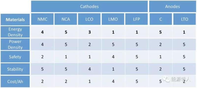 五、電池活性材料有哪些?性能對(duì)比如何?