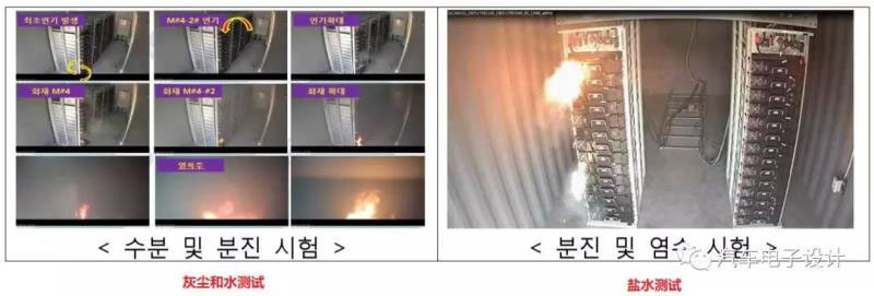 水分和粉塵測(cè)試:基于在空調(diào)周?chē)l(fā)現(xiàn)熔化痕跡的情況,通過(guò)模擬電池系統(tǒng)上的水分,灰塵和鹽水等環(huán)境來(lái)測(cè)試絕緣性能降低的可能性的結(jié)果, 性能惡化時(shí)發(fā)生火災(zāi)。
