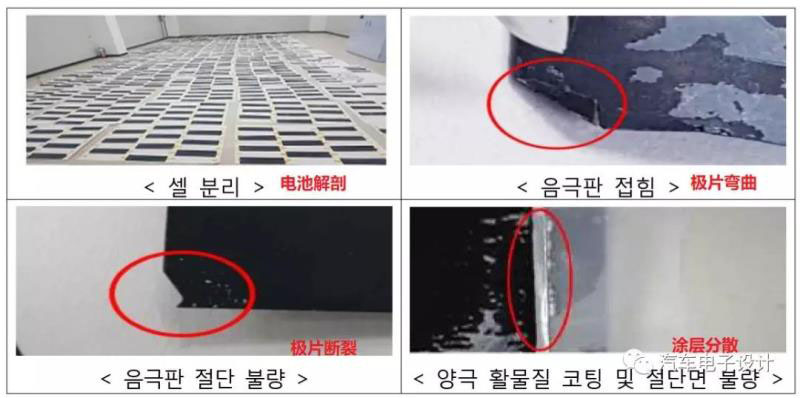 通過(guò)電池拆解分析確認(rèn)電池生產(chǎn)過(guò)程中存在一些的缺陷,確認(rèn)許多事故使用同一工廠同一批次生產(chǎn)的電池。結(jié)果發(fā)現(xiàn)這些同批次的電池里面極片上活性物質(zhì)的涂層不良等。
