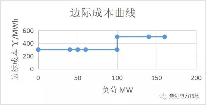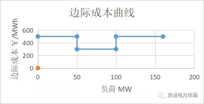 4)如果負荷在100MW-160MW之間,邊際成本為500¥/MWh。