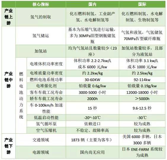 國(guó)內(nèi)外氫燃料電池產(chǎn)業(yè)核心指標(biāo)對(duì)比