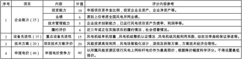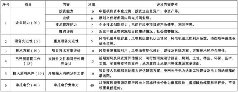 已確定投資主體風(fēng)電項目競爭配置參考評分標準