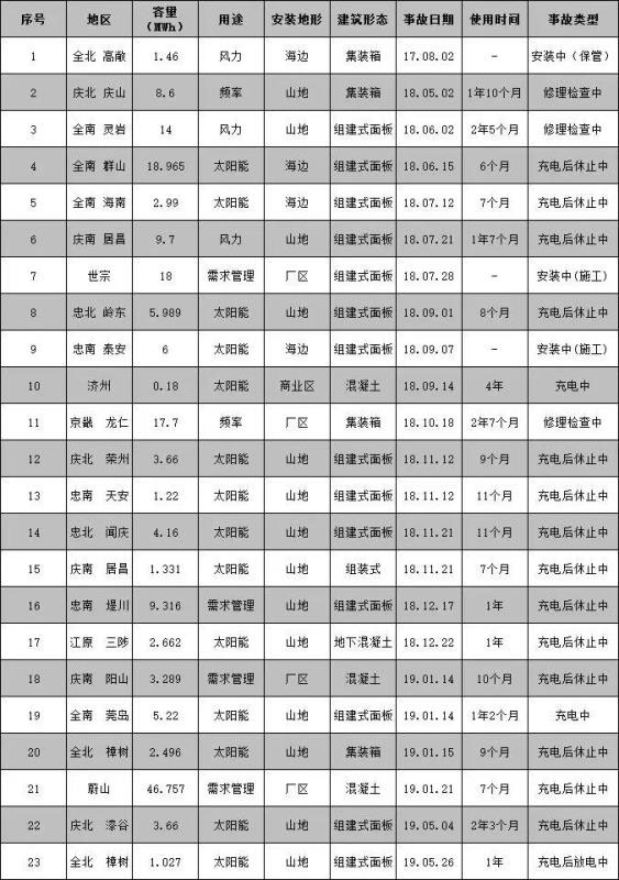 17年8月全北高敞的風電并網(wǎng)儲能電站火災之后,至今共有23起火災集中發(fā)生。