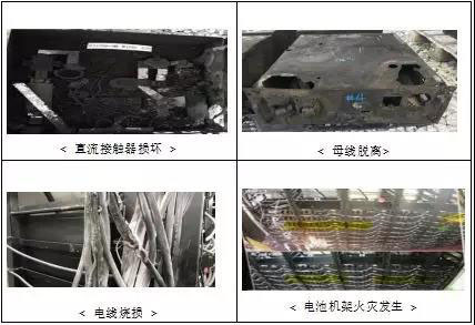 母線損壞后,導致電池機架保護裝置附件的二次短路事故發(fā)生,多處同時出現(xiàn)火災。