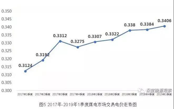 2019年1季度,大型發(fā)電集團(tuán)煤電市場(chǎng)交易平均電價(jià)為0.3406元/千瓦時(shí),較去年同期提高0.0099元/千瓦時(shí)。自2017年4季度以來,煤電市場(chǎng)交易平均電價(jià)已連續(xù)六個(gè)季度保持上漲。