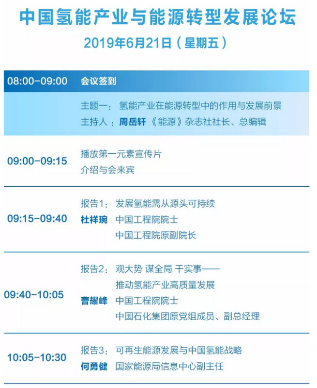 中國儲能網(wǎng)訊:中國氫能產(chǎn)業(yè)與能源轉型發(fā)展論壇將于2019年6月21日在京召開,數(shù)十位氫能行業(yè)專家、政策制定者、企業(yè)高管將參會并發(fā)表演講,會議圍繞“新產(chǎn)業(yè)、新風口、新布局”展開,重點探討氫能行業(yè)目前發(fā)展狀況與未來投資機會。