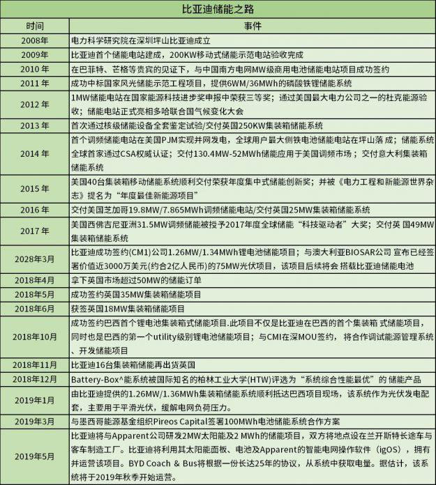 比亞迪自2008年開始進軍儲能領域,至今已有11年的經(jīng)驗積累。與其他動力電池企業(yè)相比顯得戰(zhàn)果累累。
