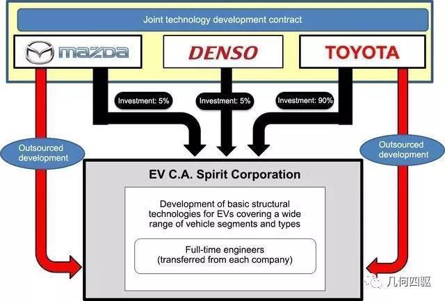 加上PPT上另外的三方:東芝,杰士湯淺(GS Yausa)和豐田自動(dòng)織機(jī),以及更早合作的松下達(dá)成合作意向的話,豐田便能夠確保在必要的時(shí)候快速擴(kuò)充純電動(dòng)汽車的產(chǎn)品線的能力,拓展全球市場(chǎng)。