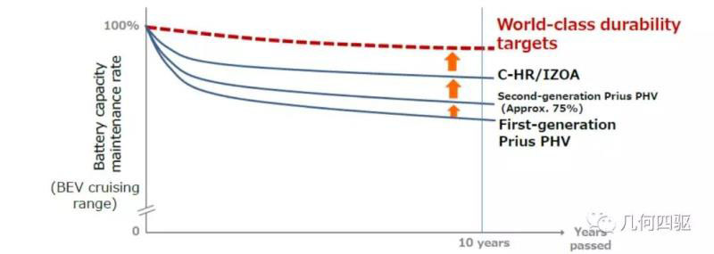 為達(dá)成這一目標(biāo),豐田另辟蹊徑,著重強(qiáng)調(diào)了電池的耐用度,即劣化性能,并將其當(dāng)作一項(xiàng)重要的戰(zhàn)略。這項(xiàng)戰(zhàn)略的實(shí)施,將顯著降低電池的折舊成本。