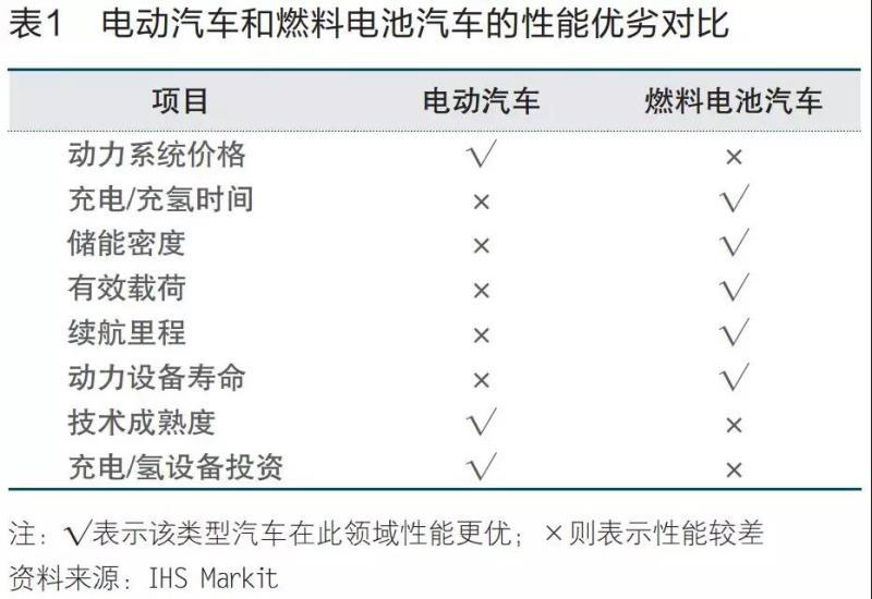 但是,電動汽車固有的電池容量小、充電時(shí)間長、電池老化快等缺陷在未來一段時(shí)間內(nèi)仍將持續(xù)存在,這給燃料電池汽車在一些應(yīng)用領(lǐng)域?qū)崿F(xiàn)突破提供了機(jī)會(見表1)。