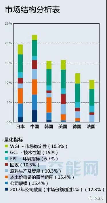 就市場(chǎng)結(jié)構(gòu)而言,中國目前在日本排名第一,領(lǐng)先于日本。由于高需求動(dòng)態(tài)以及電池生產(chǎn)能力(工業(yè)體量)的巨大積累,新公司可以在價(jià)值鏈中立足。特別自2016年以來,與日本和韓國相比,許多小公司已經(jīng)能夠在中國的電池和電動(dòng)汽車增長市場(chǎng)中占據(jù)一席之地。中國在市場(chǎng)結(jié)構(gòu)方面的優(yōu)勢(shì)之一仍然是獲取本國的原材料(生產(chǎn))和整個(gè)價(jià)值鏈的覆蓋范圍。雖然在環(huán)境評(píng)估和治理方面仍有一些負(fù)面影響,但不會(huì)影響中國在這方面的地位。