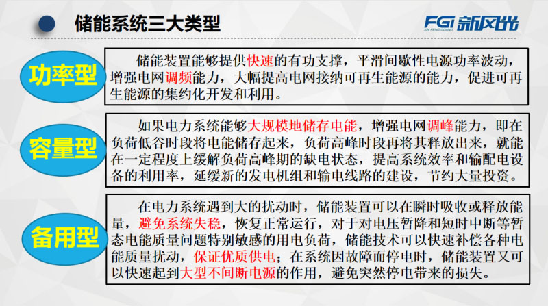 這是儲能系統(tǒng)的三大類型,儲能裝置根據(jù)充放電速度的快慢以及儲能的容量大小分為三種類型: