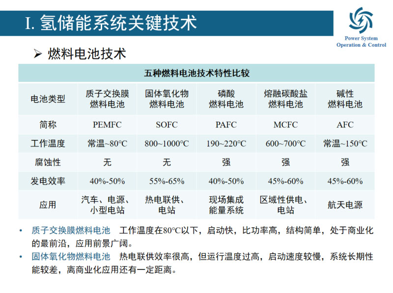 再說氫的利用,現(xiàn)在比較多的主要是燃料電池,通過燃料電池發(fā)電來用氫。燃料電池主要問題是成本比較高,技術(shù)不是完全過關(guān)。因此我們綜合考慮,從制氫、儲氫到用氫這樣幾個環(huán)節(jié),它的綜合效率如果我們用電解水制氫的話,綜合效率也就45%。因此我們說在火電廠如果我們配備氫儲能的話,從經(jīng)濟(jì)性和實用性角度來看都是不可行的。