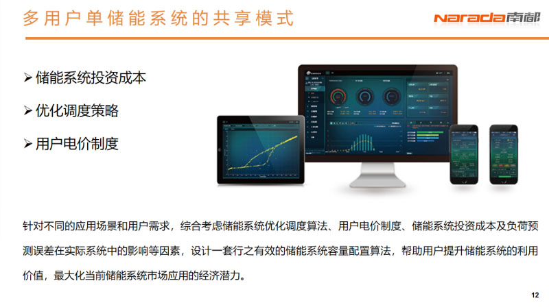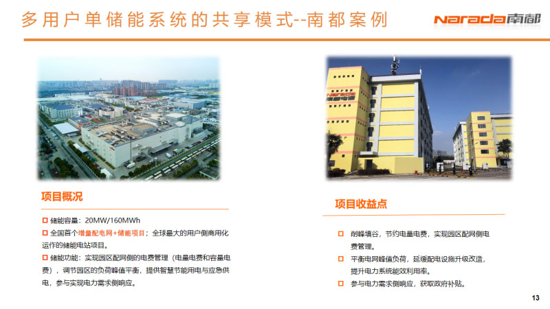 同時也要綜合考慮整個儲能系統(tǒng)的配置,目前南都做了很多的儲能系統(tǒng)方案,我們會發(fā)現(xiàn)你要考慮它的綜合投資成本,要考慮它的調(diào)度策略,要考慮它的負荷預(yù)測,我們基于的是用戶的歷史數(shù)據(jù),并不是說你用電量大你就一定能做儲能,這個我們也是排除了很多可能性的風(fēng)險因素,包括你的占地面積,各種因素考慮之后,我們才會決定我們一方要不要上儲能設(shè)備,這個不是簡單的說只要你用電量大,只要你想做,只要你有額外的充電量,你就可以上儲能,這個還有很多的前提條件。我們目前在無錫星州工業(yè)園就做了一個多用戶單儲能系統(tǒng),每天能放16萬的電。什么概念呢,它這個工業(yè)園區(qū)每個月的用電量在6000萬到7000萬度,我們每天保證儲能能夠放16萬度電。工業(yè)園區(qū)里面有好多家企業(yè),每家企業(yè)的用電肯定是存在差異性的,這個對園區(qū)來說,肯定是有效益的,而且我們幫助用戶,如果用戶他有檢修的一些需求,他有需求側(cè)響應(yīng)的需求,我們儲能都能幫他實現(xiàn),所以儲能在這里面體現(xiàn)的是綜合價值。