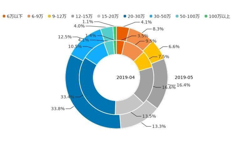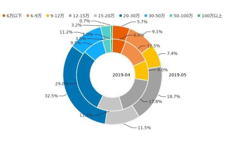 價(jià)格是用戶(hù)購(gòu)車(chē)時(shí)最主要的考慮因素之一,那么用戶(hù)對(duì)不同價(jià)位車(chē)型的意向度究竟如何,一起來(lái)了解!今年5月,12萬(wàn)以下價(jià)區(qū)用戶(hù)購(gòu)車(chē)意向占比為3.1%,相較上月增加1.8個(gè)百分點(diǎn);12-20萬(wàn)價(jià)區(qū)用戶(hù)購(gòu)車(chē)意向占比達(dá)27.2%,對(duì)比上月下滑2.0%;20-30萬(wàn)為用戶(hù)關(guān)注的主力價(jià)區(qū),用戶(hù)購(gòu)車(chē)意向占比為32.2%,相較上月下滑0.4%;30-50萬(wàn)價(jià)區(qū)用戶(hù)購(gòu)車(chē)意向占比為12.3%,比上月增加1.2個(gè)百分點(diǎn);50萬(wàn)以上價(jià)區(qū)用戶(hù)購(gòu)車(chē)意向占比為5.2%,較上月下滑0.7%。通過(guò)分析近12個(gè)月的用戶(hù)購(gòu)車(chē)意向數(shù)據(jù)發(fā)現(xiàn),2018年06月至今年5月,12萬(wàn)以下價(jià)區(qū)用戶(hù)購(gòu)車(chē)意向占比增加2.9個(gè)百分點(diǎn),低價(jià)市場(chǎng)有所升溫;12-20萬(wàn)價(jià)區(qū)用戶(hù)購(gòu)車(chē)意向占比上漲6.3%,份額保持大幅增長(zhǎng);20萬(wàn)以上價(jià)區(qū)用戶(hù)購(gòu)車(chē)意向占比,下跌9.2個(gè)百分點(diǎn),其中,20-30萬(wàn)價(jià)區(qū)用戶(hù)購(gòu)車(chē)意向占比下滑明顯,近12個(gè)月下跌11.4%。未來(lái),隨著新能源車(chē)型的布局更全面,市場(chǎng)將進(jìn)一步細(xì)分,價(jià)區(qū)覆蓋也會(huì)更加均勻。