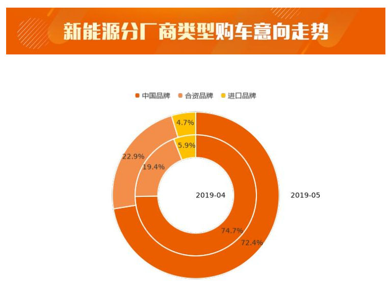 5月,中國(guó)品牌用戶(hù)購(gòu)車(chē)意向占比相比上月,降低2.3個(gè)百分點(diǎn),達(dá)到72.4%,用戶(hù)意向占比有所下滑。合資品牌用戶(hù)購(gòu)車(chē)意向占比為22.9%,相對(duì)上月上升3.5%。進(jìn)口品牌用戶(hù)購(gòu)車(chē)意向占比呈現(xiàn)下滑走勢(shì)。中國(guó)品牌在新能源市場(chǎng)仍居絕對(duì)主力,但隨著合資企業(yè)在新能源領(lǐng)域的加速布局及外資品牌的進(jìn)入,新能源領(lǐng)域的市場(chǎng)競(jìng)爭(zhēng)將會(huì)加劇,產(chǎn)業(yè)鏈整合也會(huì)加速,這對(duì)于期望通過(guò)新能源汽車(chē)實(shí)現(xiàn)彎道超車(chē)的中國(guó)品牌來(lái)說(shuō),是一個(gè)嚴(yán)峻的考驗(yàn)。后補(bǔ)貼時(shí)代,唯有真正掌握核心技術(shù)的企業(yè)才會(huì)具備競(jìng)爭(zhēng)優(yōu)勢(shì)。