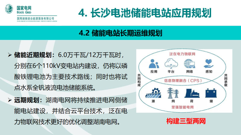 長(zhǎng)沙儲(chǔ)能電站二期的工程建設(shè),也是60兆瓦、120兆瓦時(shí),現(xiàn)在確定是建在6個(gè)110kv變電站周邊,主要采用磷酸鐵鋰技術(shù)路線,同時(shí)會(huì)試點(diǎn)全釩液流電池的儲(chǔ)能系統(tǒng)。因?yàn)楝F(xiàn)在全國(guó)都在做云平臺(tái)的技術(shù),泛在電力物聯(lián)網(wǎng),將來會(huì)結(jié)合這個(gè)技術(shù)做一個(gè)更大規(guī)模的聚合式的儲(chǔ)能電站,把儲(chǔ)能的電站利用到電網(wǎng)結(jié)構(gòu)的調(diào)整上面來。