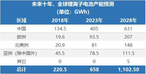 目前中國已成為全球電池產(chǎn)業(yè)的中心,動力電池、儲能電池以及傳統(tǒng)3C用電池產(chǎn)量和市場規(guī)模占全球70%以上。據(jù)數(shù)據(jù)研究機構(gòu)Benchmark Mineral Intelligence預測,未來十年,全球鋰電池產(chǎn)能將增加399%,并進入1TWh時代。其中,中國將成為全球鋰電池產(chǎn)業(yè)的重鎮(zhèn),2028年,中國的鋰電池產(chǎn)能將達到631GWh,占全球的57.2%。
