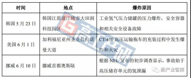 氫消費(fèi)者不僅關(guān)注用氫經(jīng)濟(jì)性,氫安全也成為氫消費(fèi)者關(guān)注的重要方向之一。氫安全似乎一直是阻礙行業(yè)發(fā)展的無形的手。對待氫安全,業(yè)界一直堅持不回避、不退縮的原則。氫安全涉及多方面,氫制取安全、氫儲運(yùn)安全、氫使用安全,其中氫儲運(yùn)安全及氫氣的儲運(yùn)方式成為制約國內(nèi)氫能及燃料電池產(chǎn)業(yè)發(fā)展的重要環(huán)節(jié)。2019年5月~6月間,國外發(fā)生三起氫燃料爆炸事件。三起爆炸事件中,因氫氣存儲單元發(fā)生爆炸有兩起。