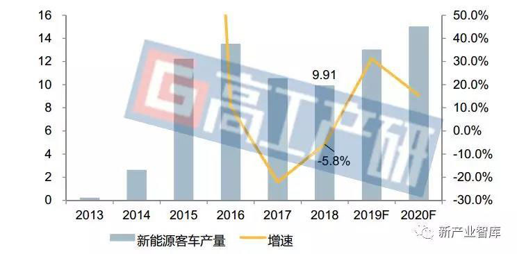 根據(jù)高工電動車研究所(GGII)預計,2019年我國新能源客車產(chǎn)量預計在13萬輛左右;隨著三年藍天行動計劃的開展以及三四線城市電動化的推進,到2020年,我國新能源客車產(chǎn)量可以達到15萬輛規(guī)模。