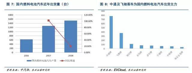 2018年發(fā)布的6-12批新能源汽車推薦目錄中,燃料電池汽車共有72款車型入選,其中客車54款,占比達到75%。2018年入選的車型中,燃料電池系統(tǒng)額定功率達到30-40kw的車型有45款,達到40-50kw的車型有13款,50kw以上的車型有14款。目前國內(nèi)燃料電池水平總體與國外差距較大,日本的燃料電池車型額定功率基本在120-200kw。