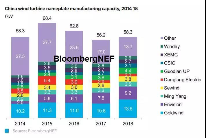 全球陸上風(fēng)電與海上風(fēng)電機(jī)艙產(chǎn)能將于2019年達(dá)到120GW,同年全球風(fēng)機(jī)需求預(yù)計(jì)為71GW。中國(guó)占有全球約一半的風(fēng)機(jī)產(chǎn)能,同時(shí)也是產(chǎn)能過(guò)剩問(wèn)題最為嚴(yán)重的市場(chǎng)。
