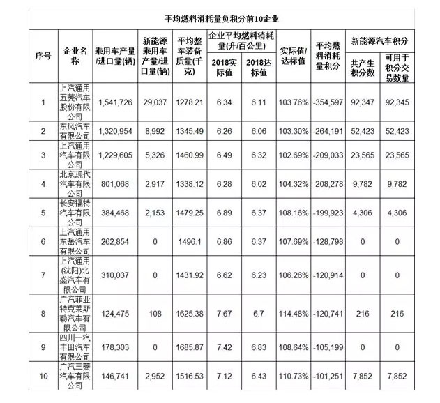 75家車企平均燃料消耗量負積分總計295.13萬分,其中前10企業(yè)負分累計達到191.12萬分,占平均燃料消耗量負分的比例為64.76%。其中上汽通用五菱負分最多達到35.46萬分,其新能源汽車積分也僅有9.23萬分;東風有限負積分26.42萬分次之,上汽通用第三,其平均燃料消耗量積分顯示負20.9萬分。