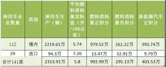 7月2日,工信部、商務(wù)部、海關(guān)總署、市場監(jiān)管總局聯(lián)合發(fā)布2018年度中國乘用車企業(yè)平均燃料消耗量與新能源汽車積分核算情況公告,141家境內(nèi)乘用車企業(yè)生產(chǎn)2313.91萬輛乘用車(含新能源乘用車,不含出口乘用車),平均燃料消耗量實際值為5.80升/100公里,燃料消耗量正積分為992.99萬分,燃料消耗量負積分為295.13萬分,新能源汽車正積分為403.53萬分。