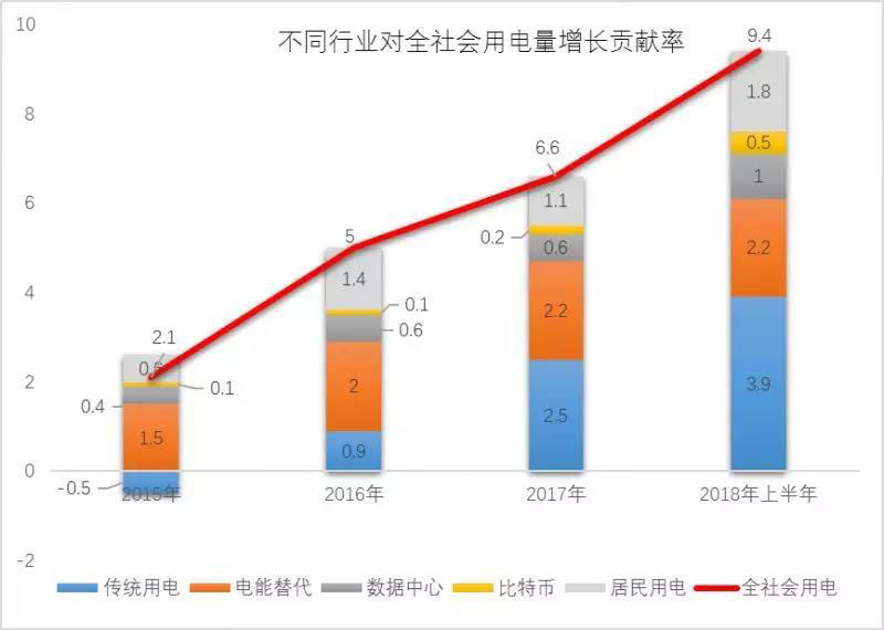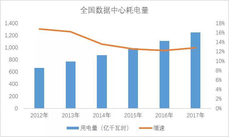 近年來,隨著互聯(lián)網(wǎng)經(jīng)濟、大數(shù)據(jù)等新經(jīng)濟的迅速發(fā)展,高電耗數(shù)據(jù)中心及數(shù)字貨幣“爆發(fā)式”增長大幅推高了總用電量。據(jù)相關數(shù)據(jù)顯示,這些新經(jīng)濟行業(yè)對整體用電量增速的貢獻率已從2015年的0.5個百分點迅速增長到2018年上半年的 1.5個百分點。隨著信息化技術的迅速發(fā)展,在經(jīng)濟發(fā)展中的重要性越來越突出,無論是傳統(tǒng)行業(yè)的轉型升級,還是新興行業(yè)的迅速崛起,都帶來了數(shù)據(jù)收集、儲存和處理的爆發(fā)性需求。據(jù)ICTresearch咨詢公司的研究顯示,數(shù)據(jù)中心的耗電量已從2012年664.5億千瓦時暴增至2017年的1200-1300億千瓦時,全球最大的水電站——三峽水電站的全年發(fā)電量(2017年全年發(fā)電量為 976.05億千瓦時)都無法滿足數(shù)據(jù)中心用電量需求,而且中國信通院預測,未來 3 年服務器數(shù)量有望保持 30%以上的增長,對整體用電量增速的貢獻率在每年1-1.2個百分點。