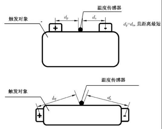 圖4 GB/T 36276—2018過(guò)充觸發(fā)時(shí)溫度傳感器布置位置示意圖