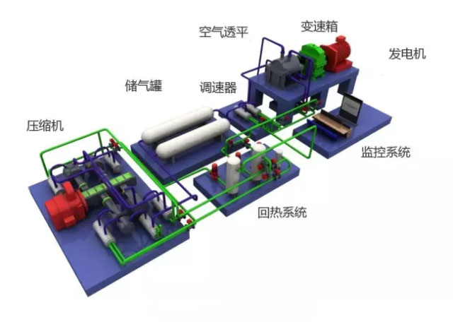 簡單來說,就是將低谷電、棄風(fēng)電、棄光電等不易儲藏的電力儲存在壓縮空氣中,將其轉(zhuǎn)化為空氣分子的內(nèi)勢能。當(dāng)用電高峰到來之時,再把高壓空氣的分子勢能釋放出來做功發(fā)電,從而改善發(fā)電與用電的時空結(jié)構(gòu)。